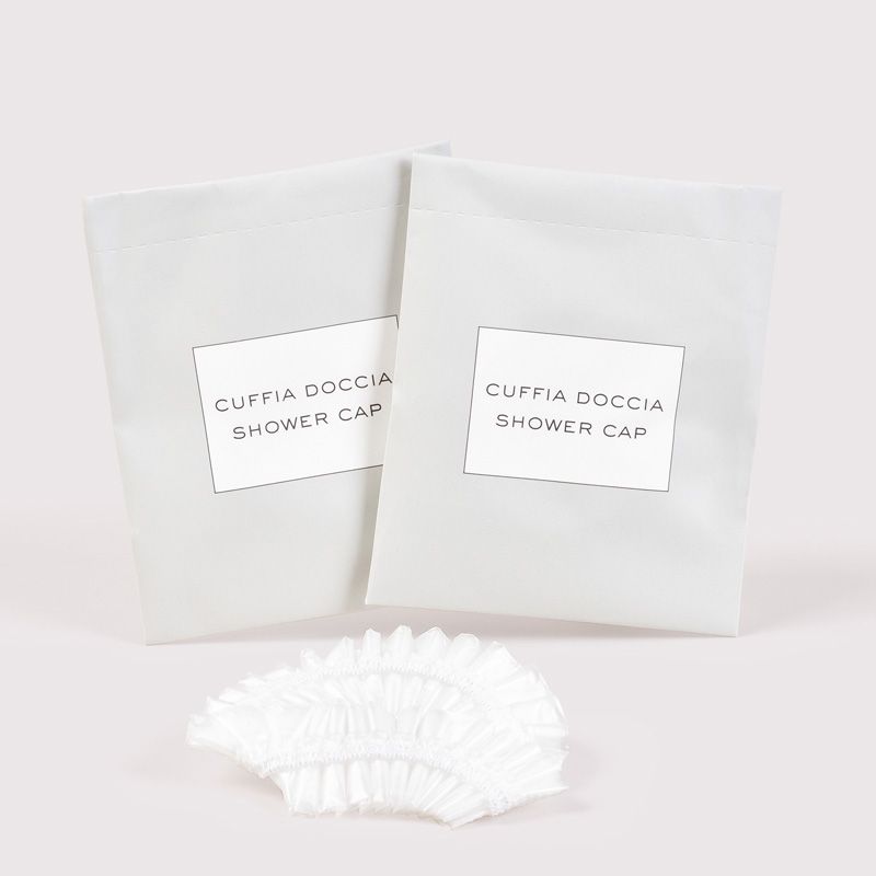 La cuffia doccia della linea di cortesia Mayflè è 100% bio in quanto è ottenuta grazie alla sapiente lavorazione di estratto di mais. Assicurati che ogni stanza da bagno del tuo hotel o albergo sia dotata delle pratiche cuffie per permettere ai tuoi ospiti di proteggere i capelli dall’acqua durante il momento della doccia.